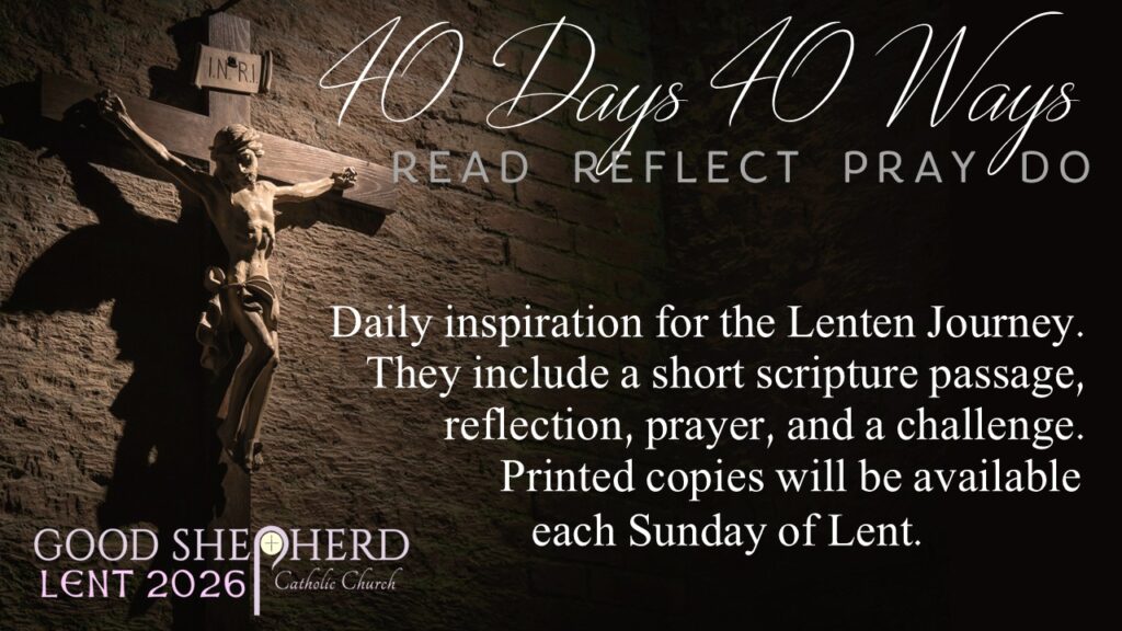 40 Days 40 Ways READ REFLECT PRAY DO Daily inspiration for the Lenten Journey posted on Facebook and Instagram. They include a short scripture passage,…
