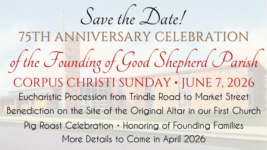 In 2026, Good Shepherd will be celebrating its 75th Anniversary of the Parish. In 2027, we will celebrate the 50th Anniversary of the Trindle Road Campus. This is indeed a wonderful time to be part of the Good Shepherd family as we celebrate these important milestones and honor the legacy of grace and generosity to which we are heirs. Now is the time for us to renew, restore, and rejoice.