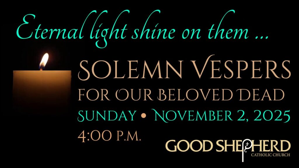 During this tender and consoling ceremony, candles are lit in memory of our parishioners who have died this past year. Their names will also be solemnly read. Candles will be available for you to light in memory of your own loved ones who have died this year or before. It is a beautiful service of hope, healing, and faith. It will move your heart.